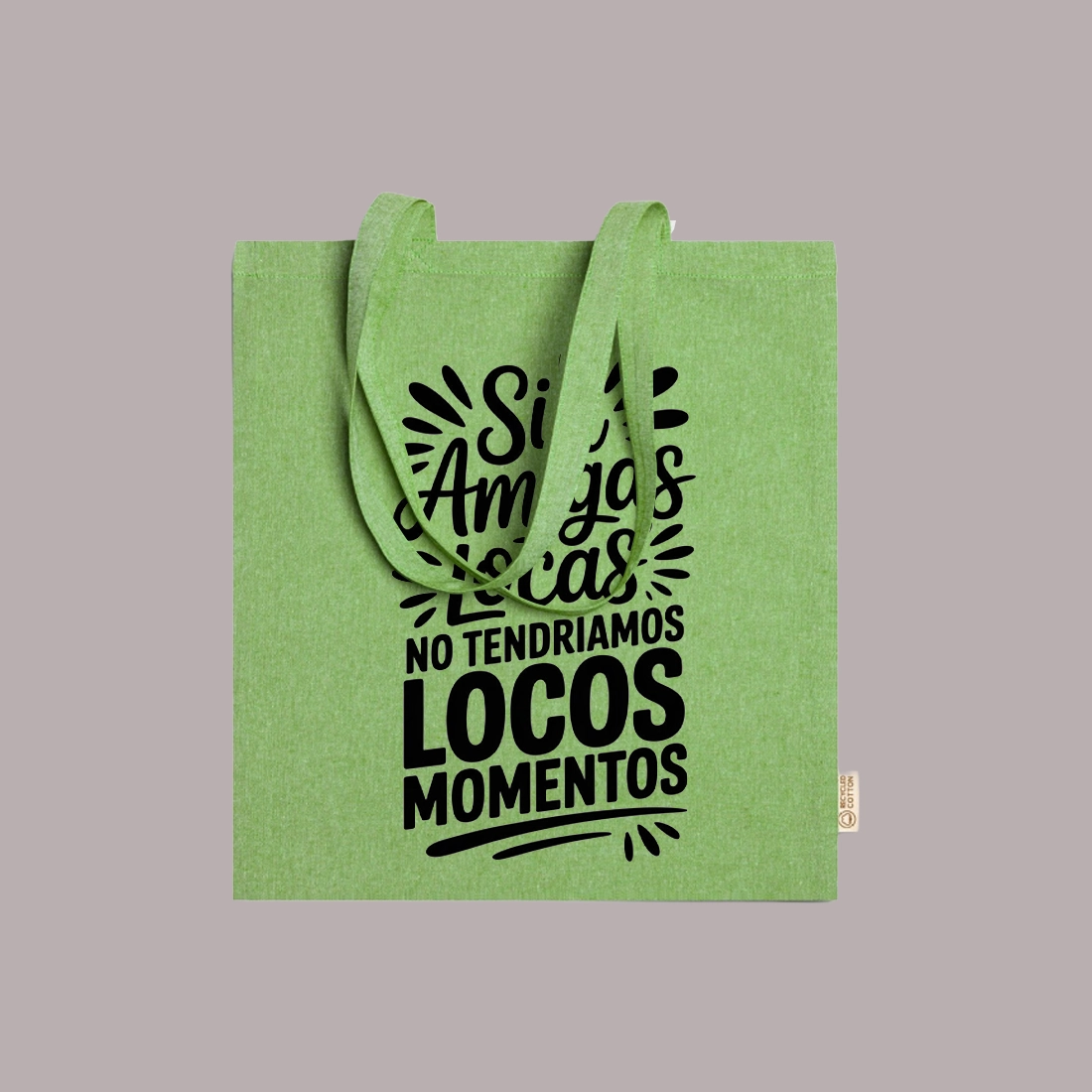 Bolsa de algodón reciclado de 120 g/m2 en acabado jaspeado de diseño moderno y ligero en colores. Perfecta para llevar a la oficina, salir con amigas o viajar, este producto te ofrece el espacio y la organización que necesitas.